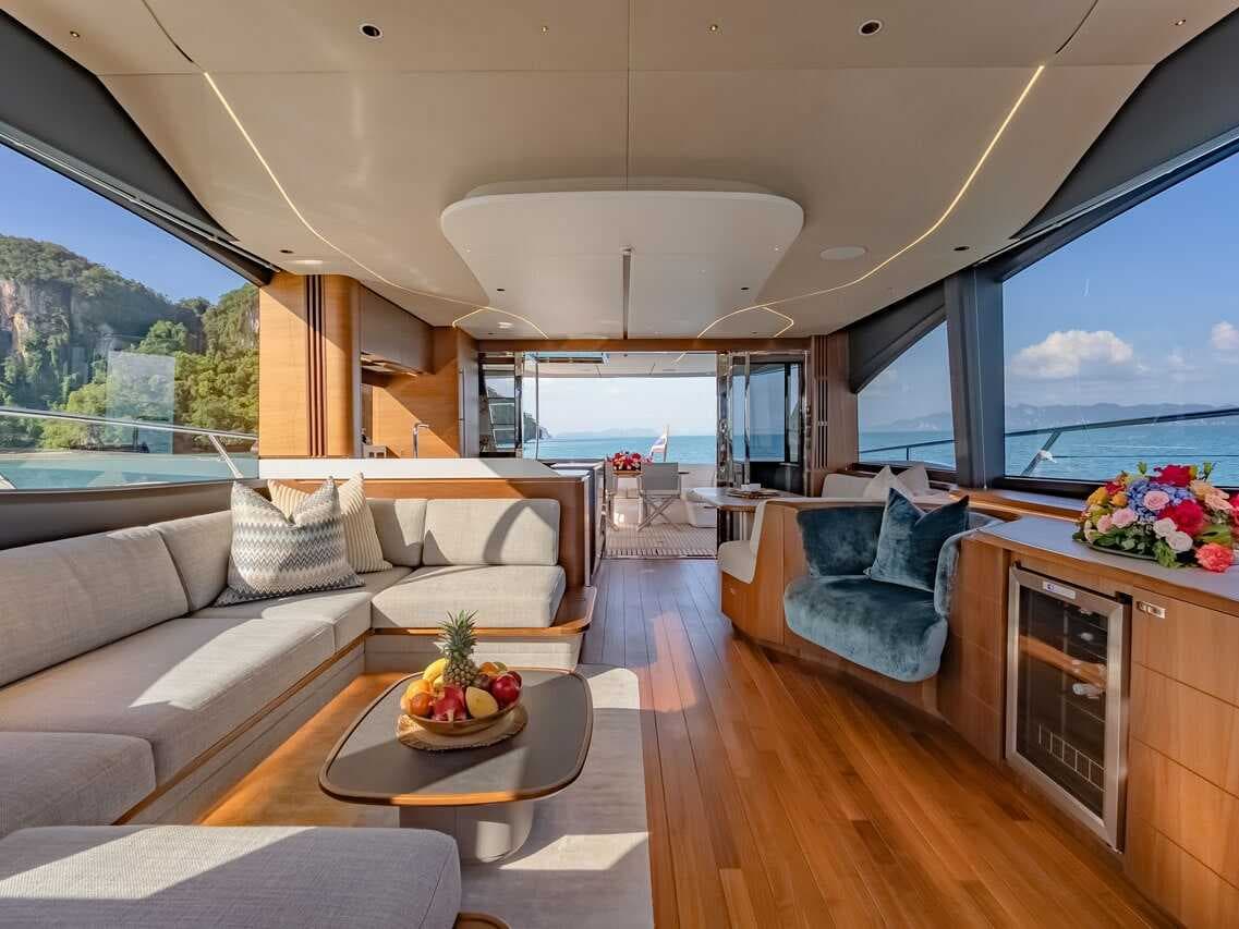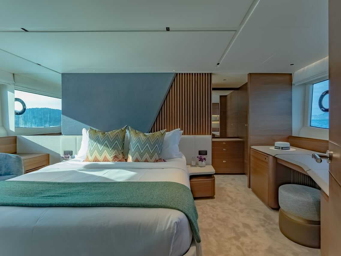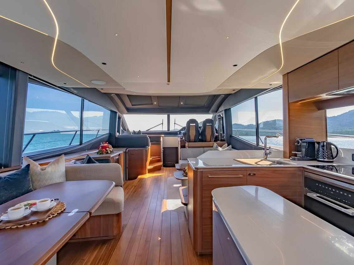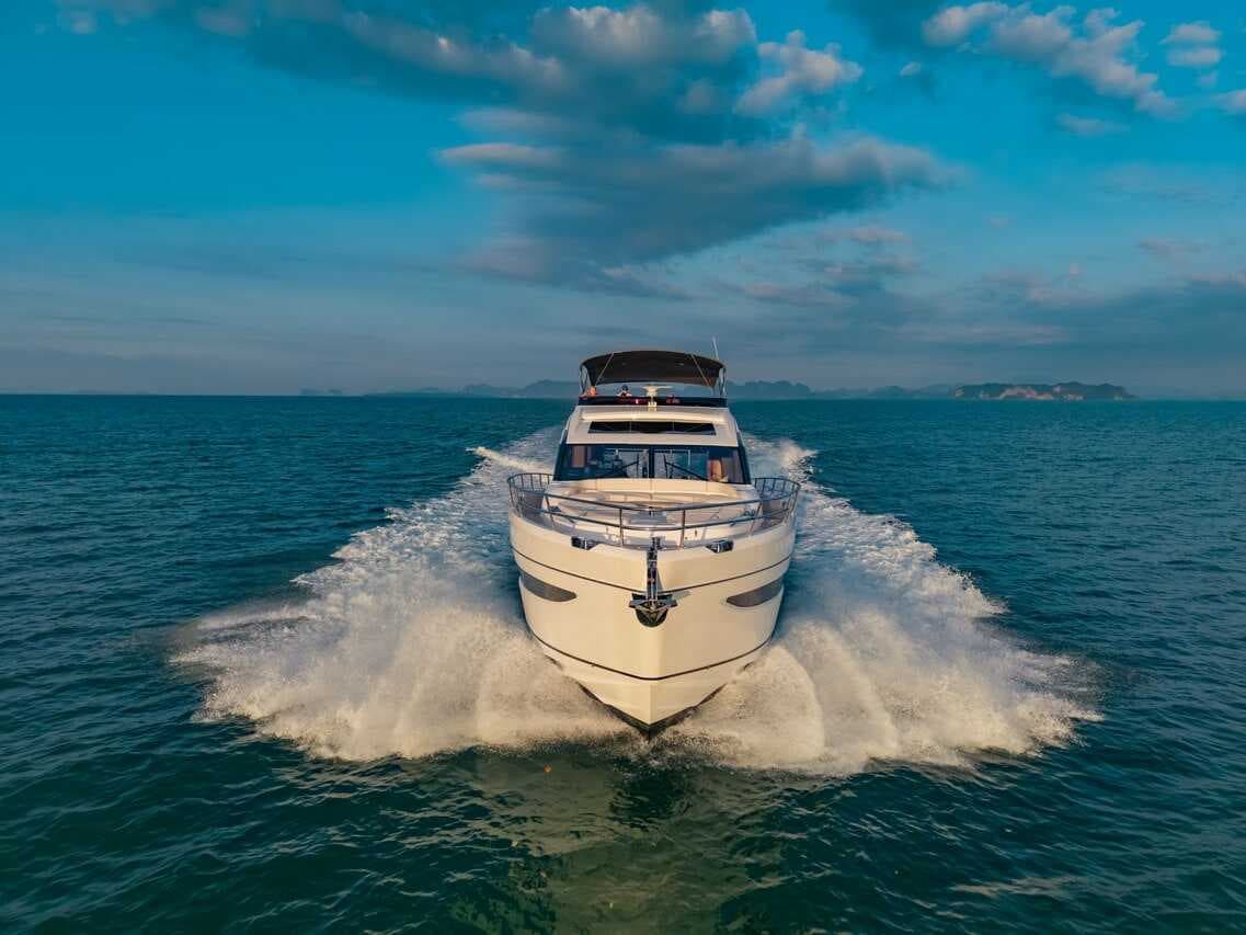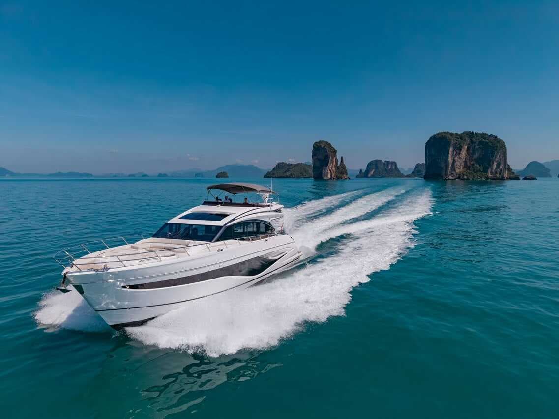 click to expandtap to expandA striking blend of contemporary elegance and performance by Princess Yachts. Built in 2025, Kati S features four exquisitely appointed cabins with three en-suite bathrooms and a master suite with separate entrance. Cruising at 20 knots, she is perfect for island-hopping between Phang Nga Bay, Krabi and Phi Phi Islands — or longer passages to the Similan or Lipe Islands. A professional crew of four including captain, deckhand, stewardess and chef ensures a seamless journey.